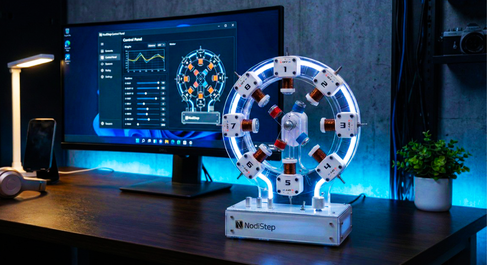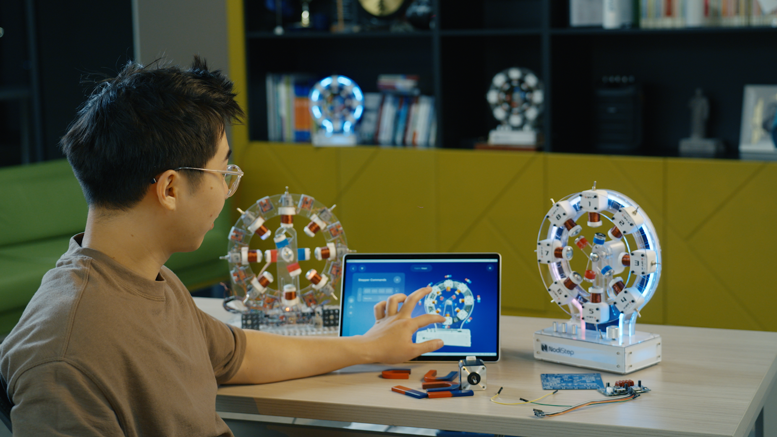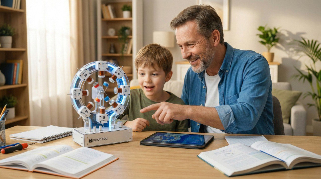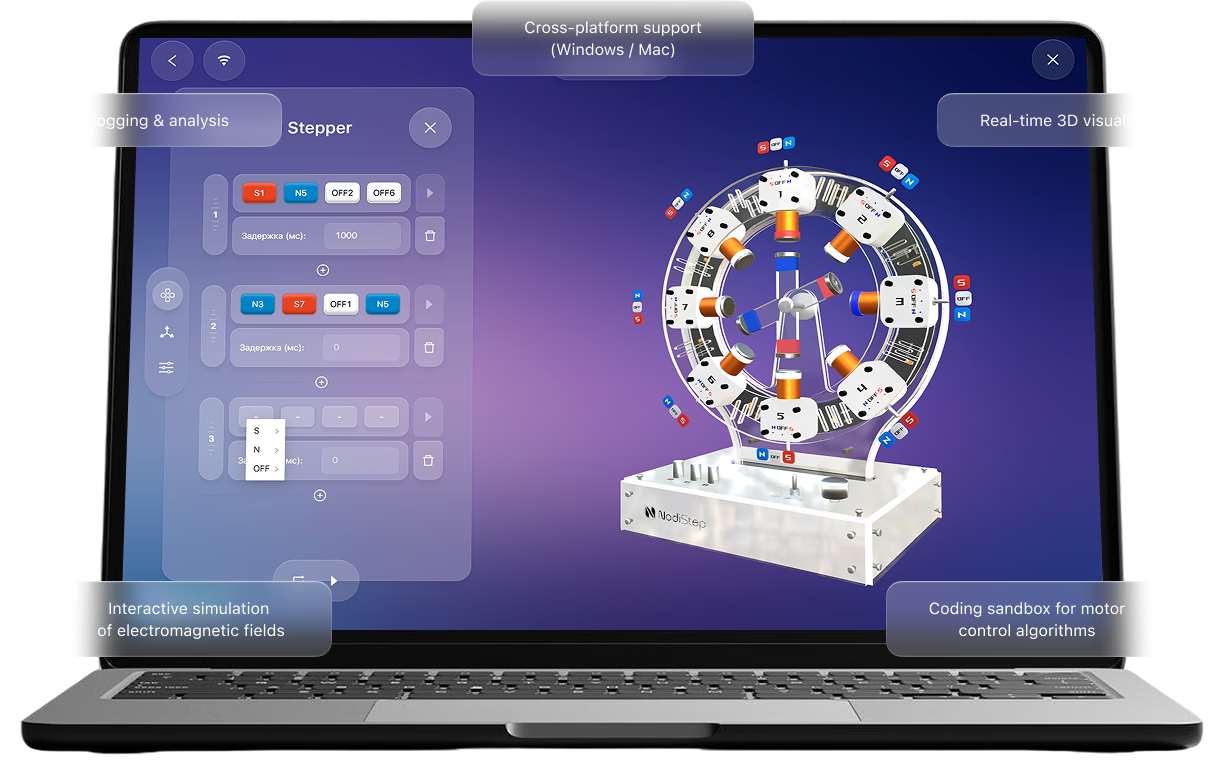 NodiStep is a hands-on STEM kit that brings electromagnetism to life. It combines a real working model with interactive software, letting students see and control magnetic motion in real time.
