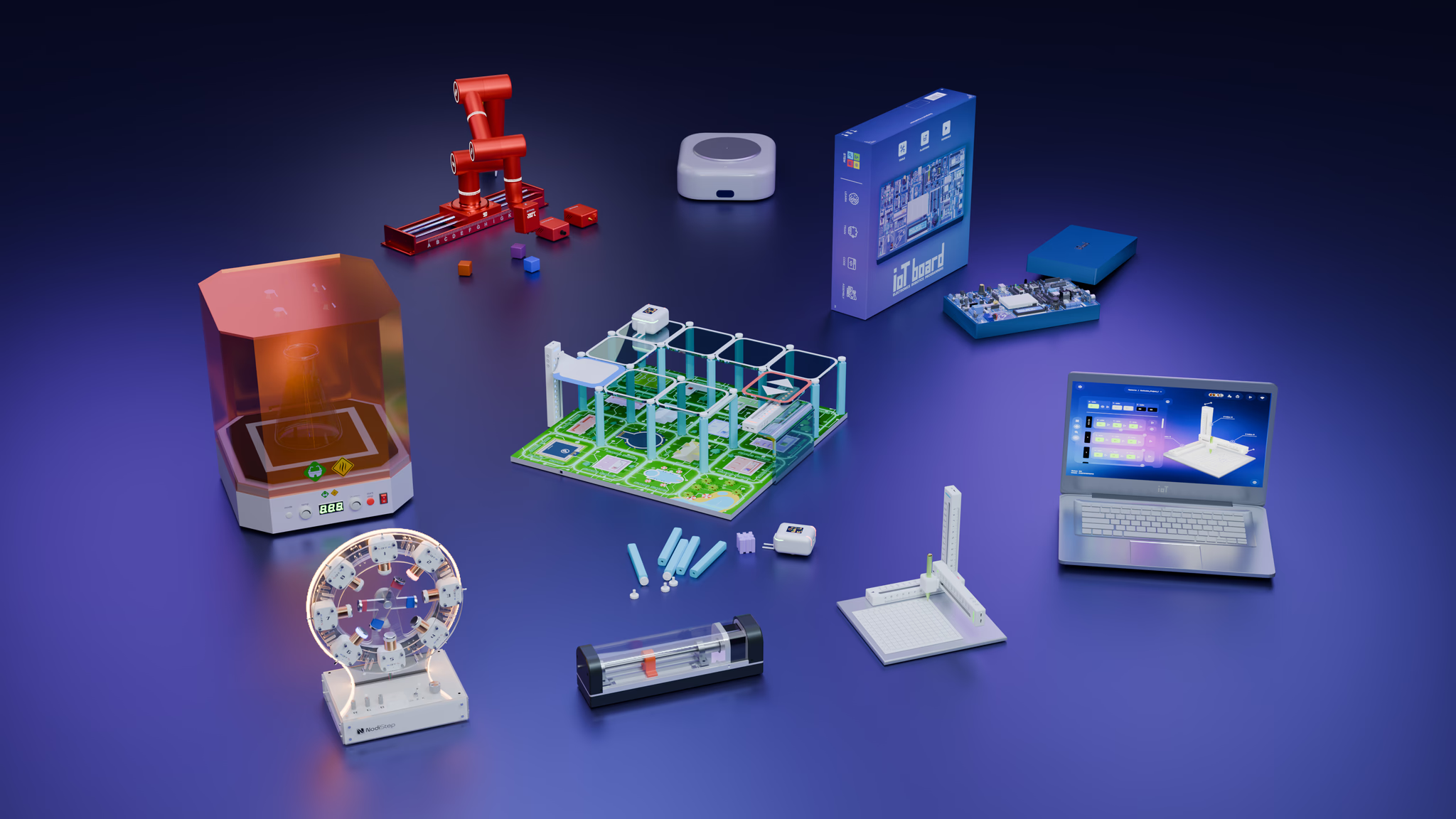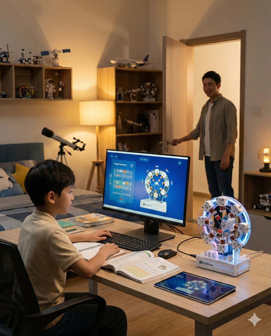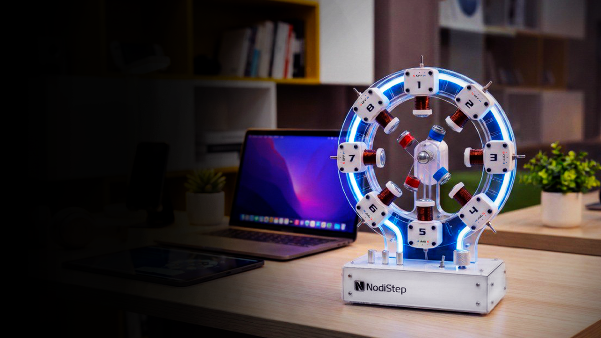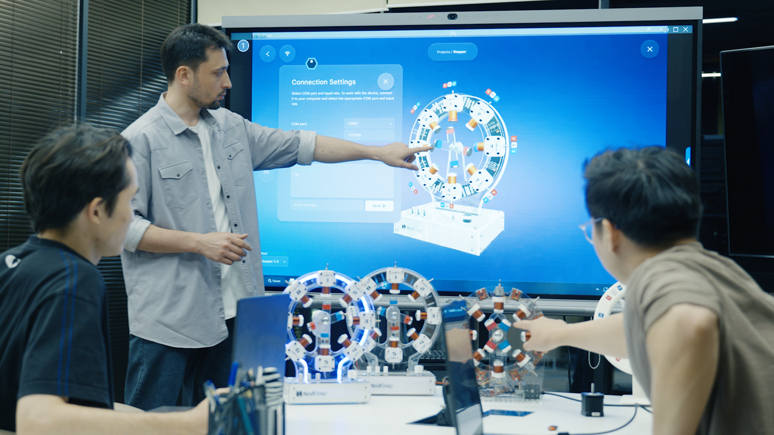 NodiStep is a hands-on STEM kit that brings electromagnetism to life. It combines a real working model with interactive software, letting students see and control magnetic motion in real time.